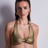 Moderne et sexy, le maillot de bain triangle coque amovible Sunlight Glow déploie sa matière lamée brillante haut sur la poitrine pour un décolleté profond. Disponible jusqu’en XXL et avec coques amovibles, il se noue autour du cou et dans le dos, assurant confort et maintien à toutes les morphologies.