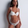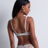- Une laize graphique vient dénoter les rondeurs de la broderie et laisse percevoir la peau par transparence