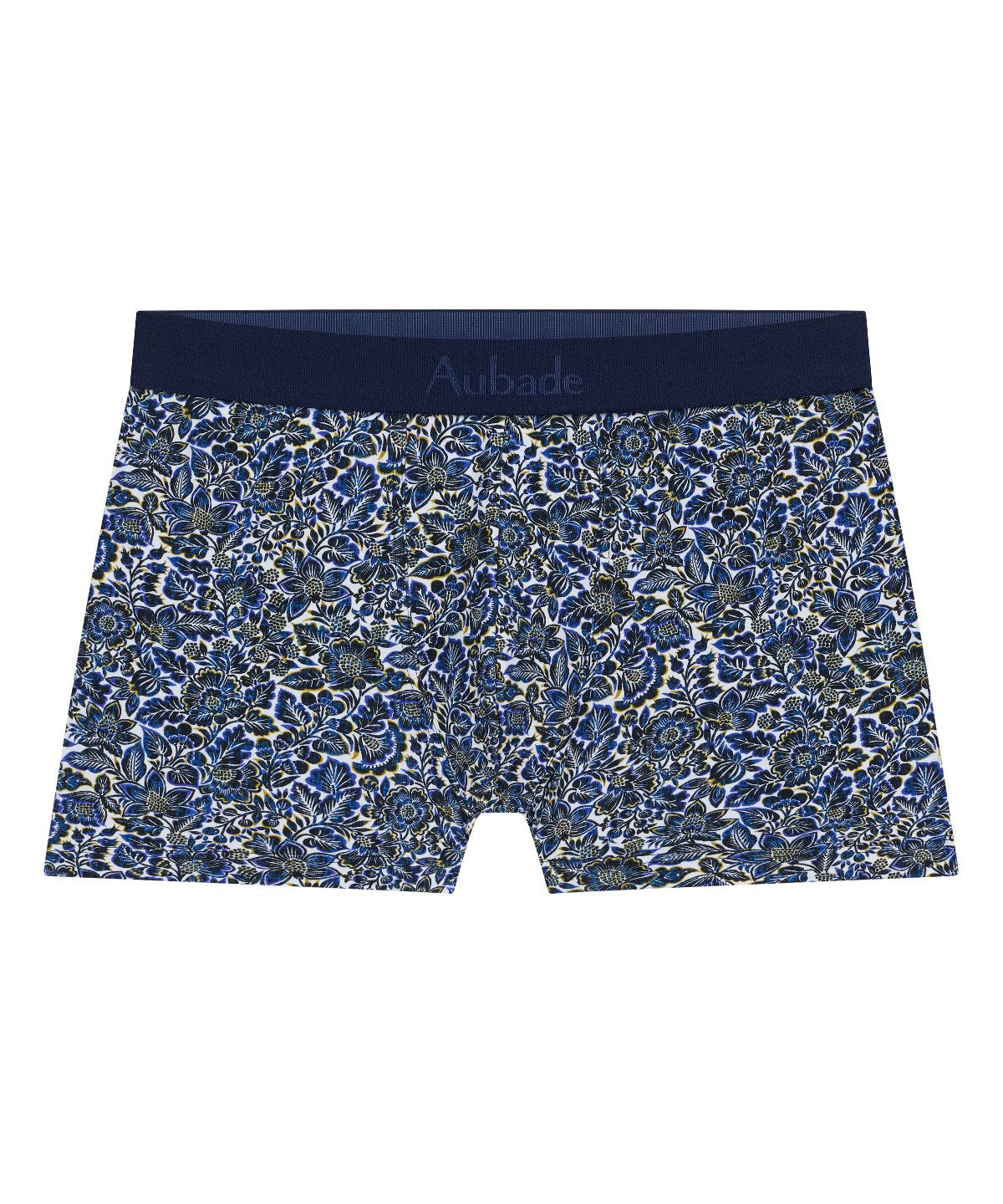 Puisant ses inspirations dans la tradition textile indonésienne, le boxer Batik, certifié GOTS® (EGL n°241363), déploie un motif résolument sexy de fleurs dans des coloris bleu et blanc intenses. Doublé d’un renfort à l’entrejambe et maintenu par une ceinture élastiquée à la taille, il offre un confort optimal au quotidien.