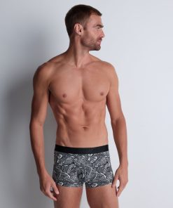 Puisant ses inspirations dans la tradition textile indonésienne, le boxer Batik, certifié GOTS® (EGL n°241363), déploie un motif résolument sexy de fleurs dans des coloris bleu et blanc intenses. Doublé d’un renfort à l’entrejambe et maintenu par une ceinture élastiquée à la taille, il offre un confort optimal au quotidien.