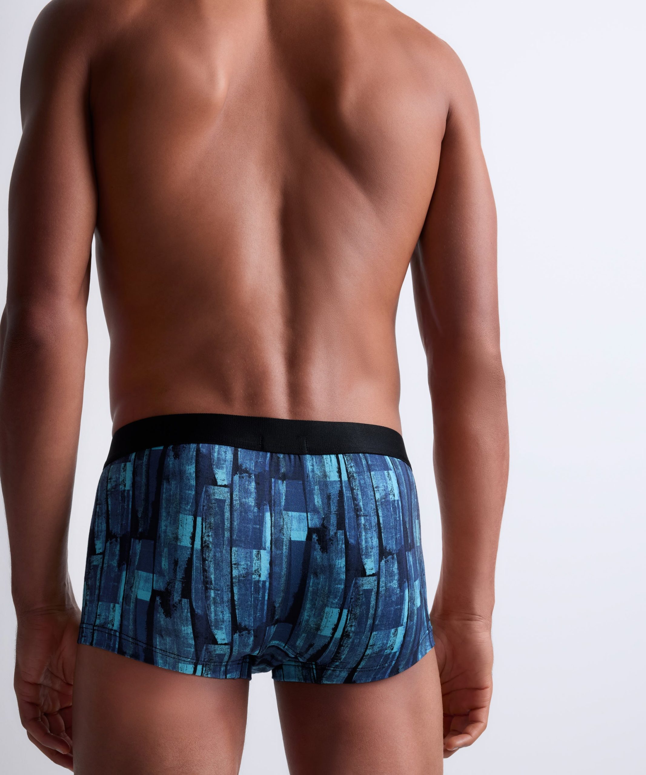 Moderne, original et sexy, le trunk Denim Art revisite l’esprit jean dans un imprimé trompe-l’œil tout en camaïeu de bleus. Conçu dans un coton modal stretch très agréable à porter et sans coutures sur les côtés, il assure confort, légèreté et liberté de mouvement tout au long de la journée.