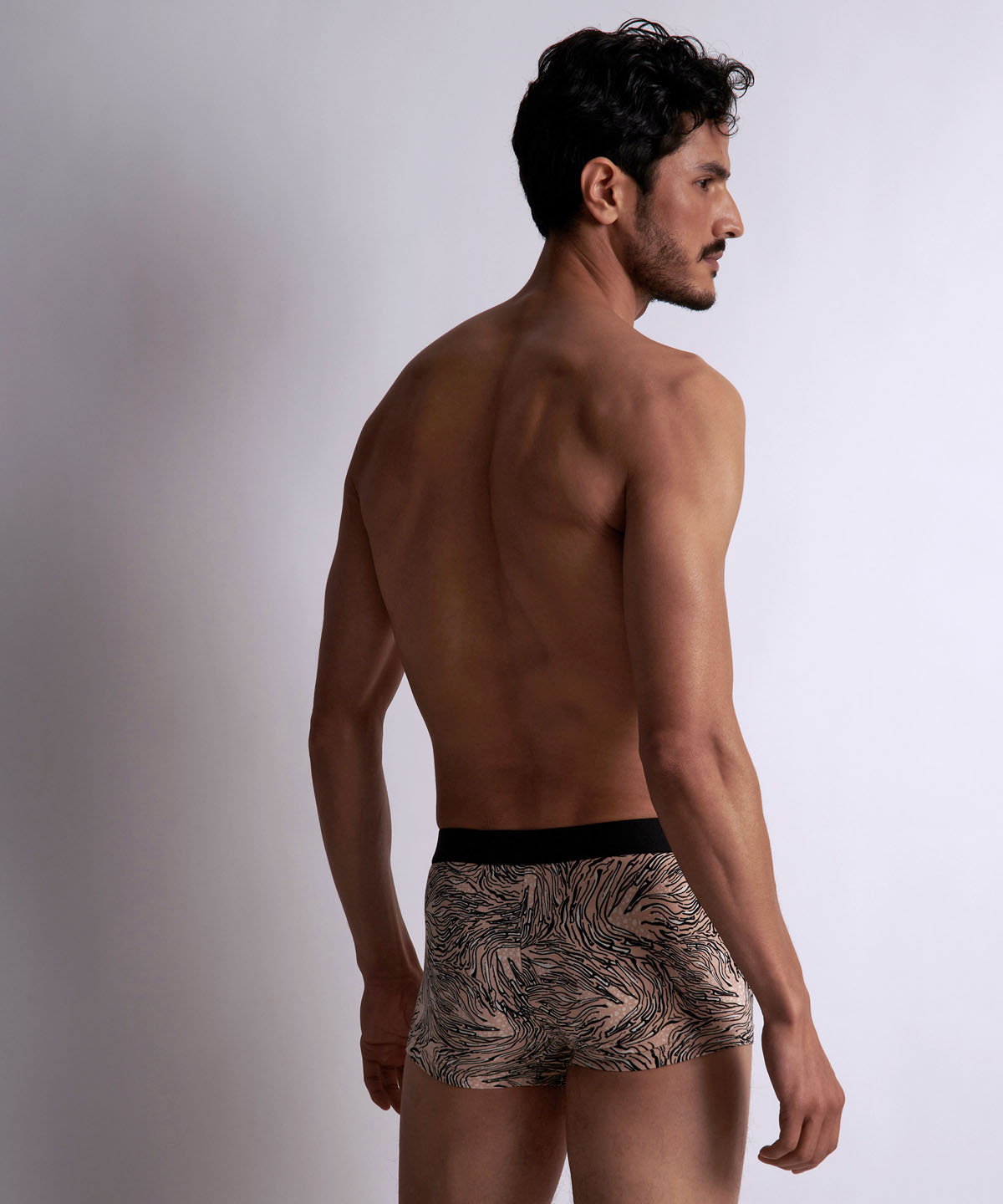 Pendant de la ligne de nightwear Smocky Night, le trunk Féline surfe sur la tendance des imprimés animaliers dans une version plus graphique et plus originale. Sa matière douce en coton, sans coutures, procure une sensation de confort absolu que vient renforcer la doublure à l’entrejambe pour un maintien optimal.