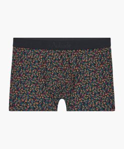 Inspiré du street art, le trunk Neon Light déploie ses motifs graffiti sur un fond noir pour un effet hypnotique et moderne. Très mode, plus court que le boxer, il offre confort et maintien grâce à sa matière en coton doux, son renfort à l’entrejambe et son absence de coutures.