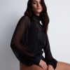 Versatile, le body mousseline de la collection Les Bodys by Aubade déploie des jeux de transparence sensuels, qui dévoilent subtilement la peau. Offrant une coupe moderne, il associe la légèreté d’une mousseline de soie élégante pour un style blousant résolument sexy au confort d’une maille opaque à l’effet seconde peau.
